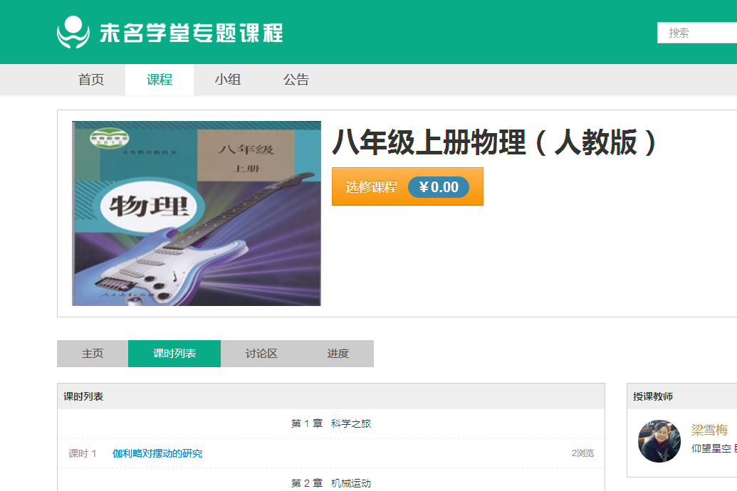 好消息,今天小编要送给大家一个课程大礼包! 就是梁雪梅老师的物理学科八年级上册一系列微课教程!还不快点选修! 看到没有,免费的哦!!! 总共65个课时,这么全套的有木有,感谢梁雪梅老师的无 ...