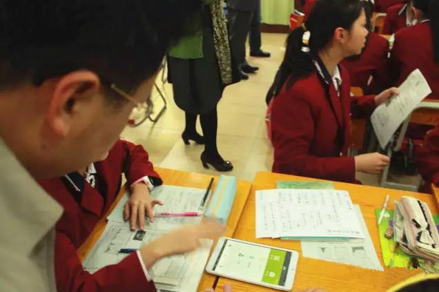 赵厅长一行深入课堂,随堂听取了华颖外国语学校七年级一班欧老师的地理课《撒哈拉以南的非洲》。欧老师将整堂课分为四个环节,(1)自主学习:通过天云课堂教学平台播放备好的微课视频,让同学们通过声情并茂的视频内容对撒哈拉以南的非洲有了整体的了解,并激发了同学们的向往之情;(2)小组互动:将学生分成九个小组,学生通过小组协作完成老师布置的教学任务并上台讲解展示学习成果;(3)试卷测评:使用“天云课堂”平台所拥有的强大题库系统功能,智能化的在线选题组卷,打印成纸质试卷并分发给每个小组,让小组成员在纸质试卷上答题;(4)试卷点评:学生做完试卷后,使用“天云课堂”平台提供的核心专利产品“智能阅卷”APP,对着纸质试卷“拍一拍”,系统会自动快速批改试题,并实时统计分数,形成试卷测试成绩报表,老师再根据系统统计的习题错误率情况,有针对性的进行讲解。
